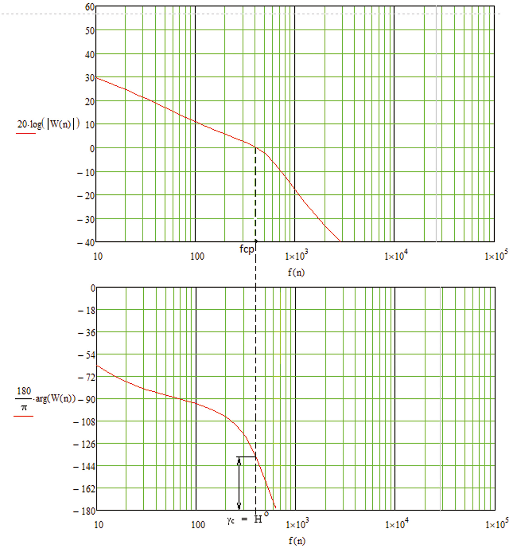 Выводы. При помощи представленного метода реально оценить важный критерий импульсного источника питания — его устойчивость. Согласно графику ФЧХ на рис. 1 исследуемого ИСН, угол γс = H° на частоте fср имеет значение: