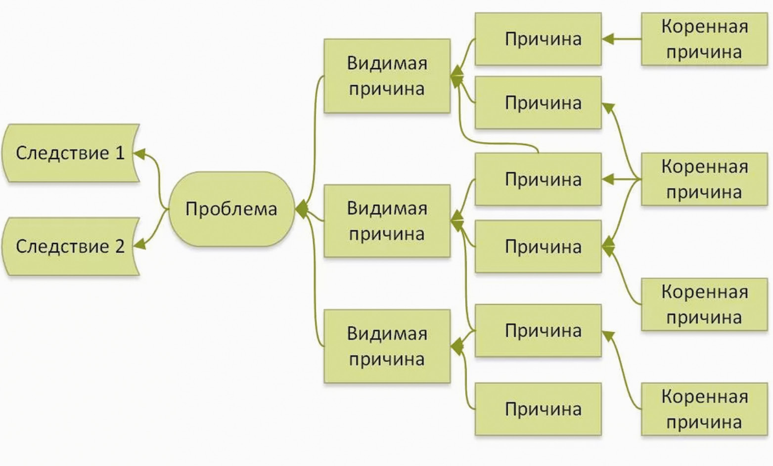 - Продолжайте спрашивать «почему?», пока не придете к главной первопричине.