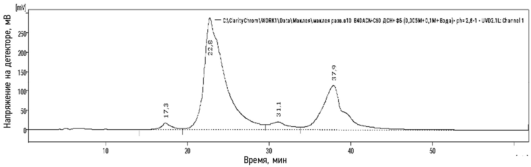 Рис. 2. ВЭЖХ-анализ с подвижной фазой на основе ацетата аммония