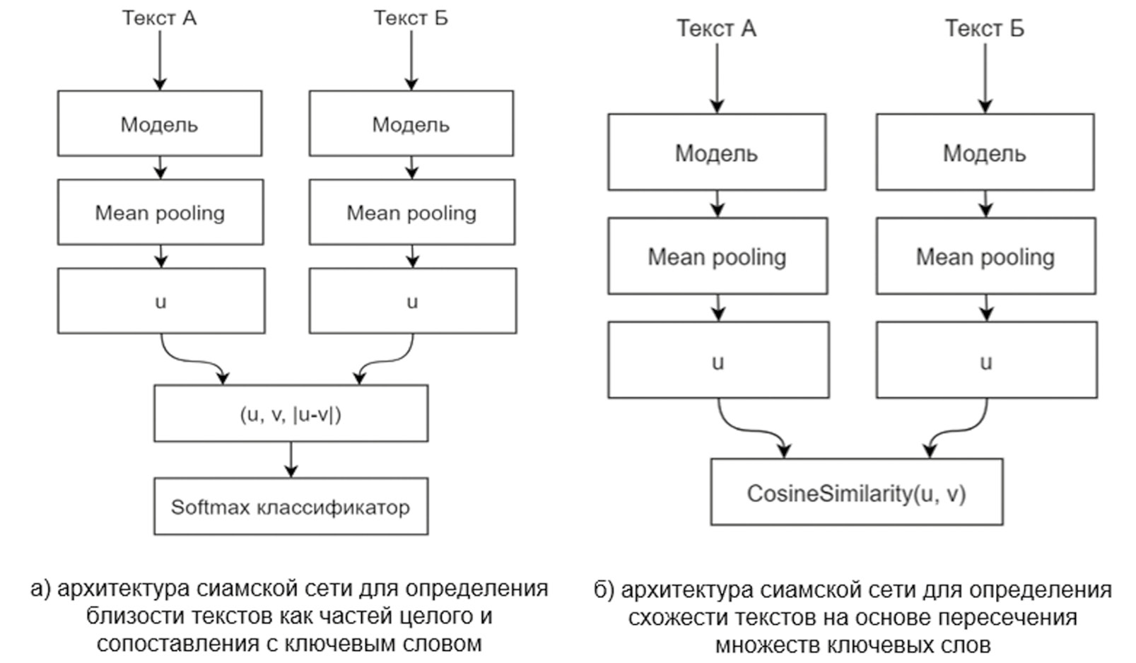 Рис. 1. Архитектуры сиамской сети для каждой задачи