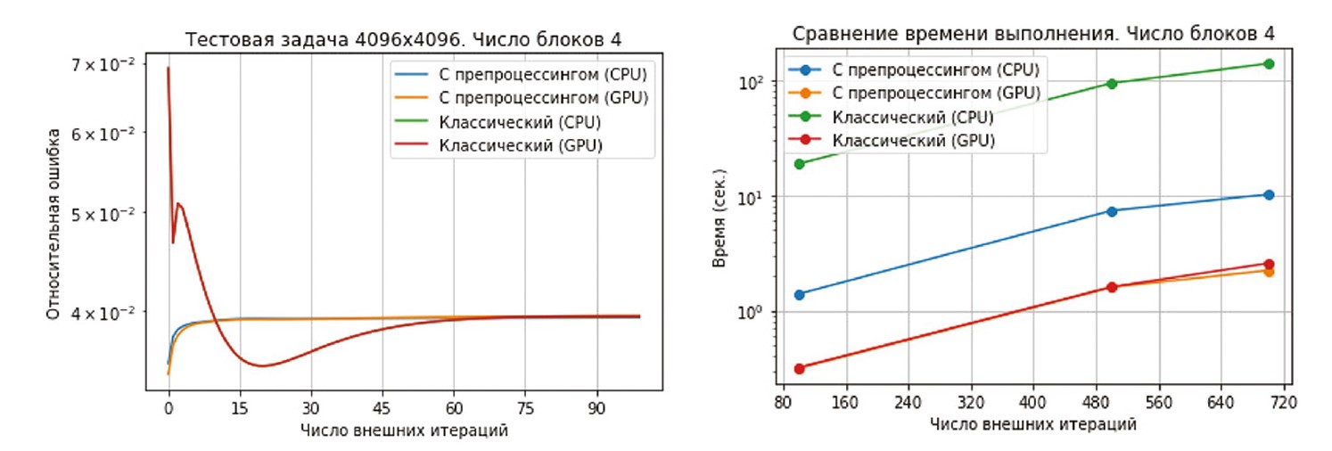 Рис. 2. Тестовая задача c матрицей . Число блоков 4