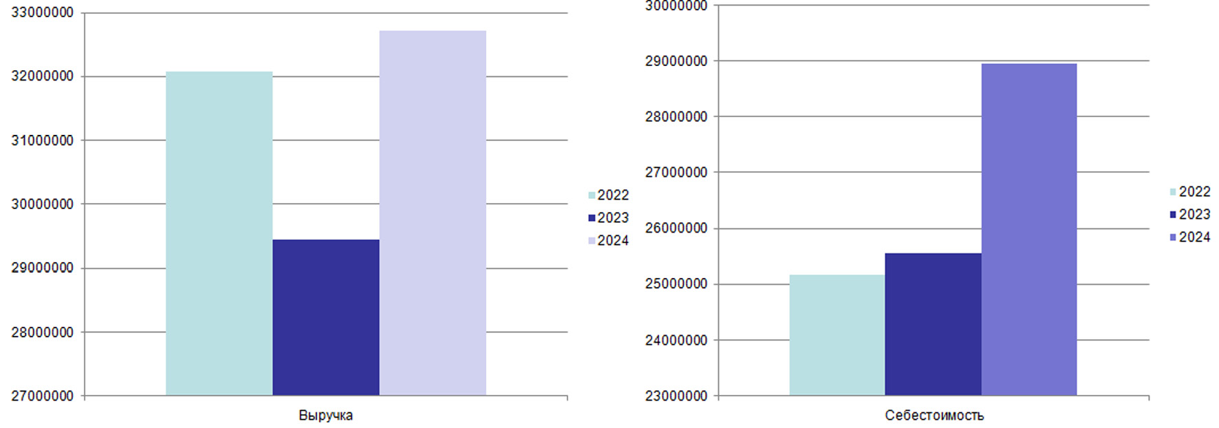 Рис. 1. Динамика показателей выручки и себестоимости ПАО «НГК «Славнефть»